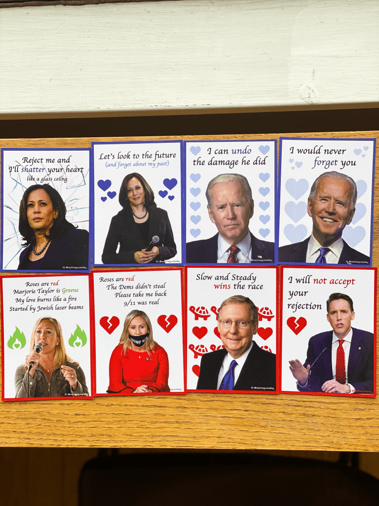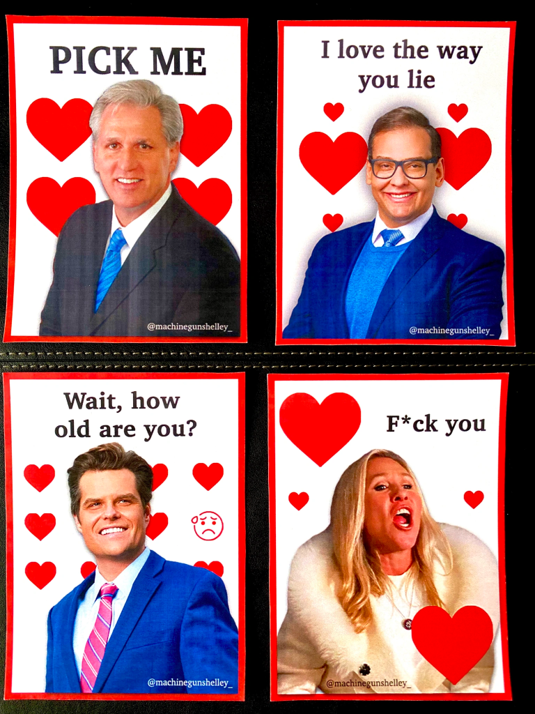 Every year, I make politically charged Valentines. Some have been featured in The Washingtonian.